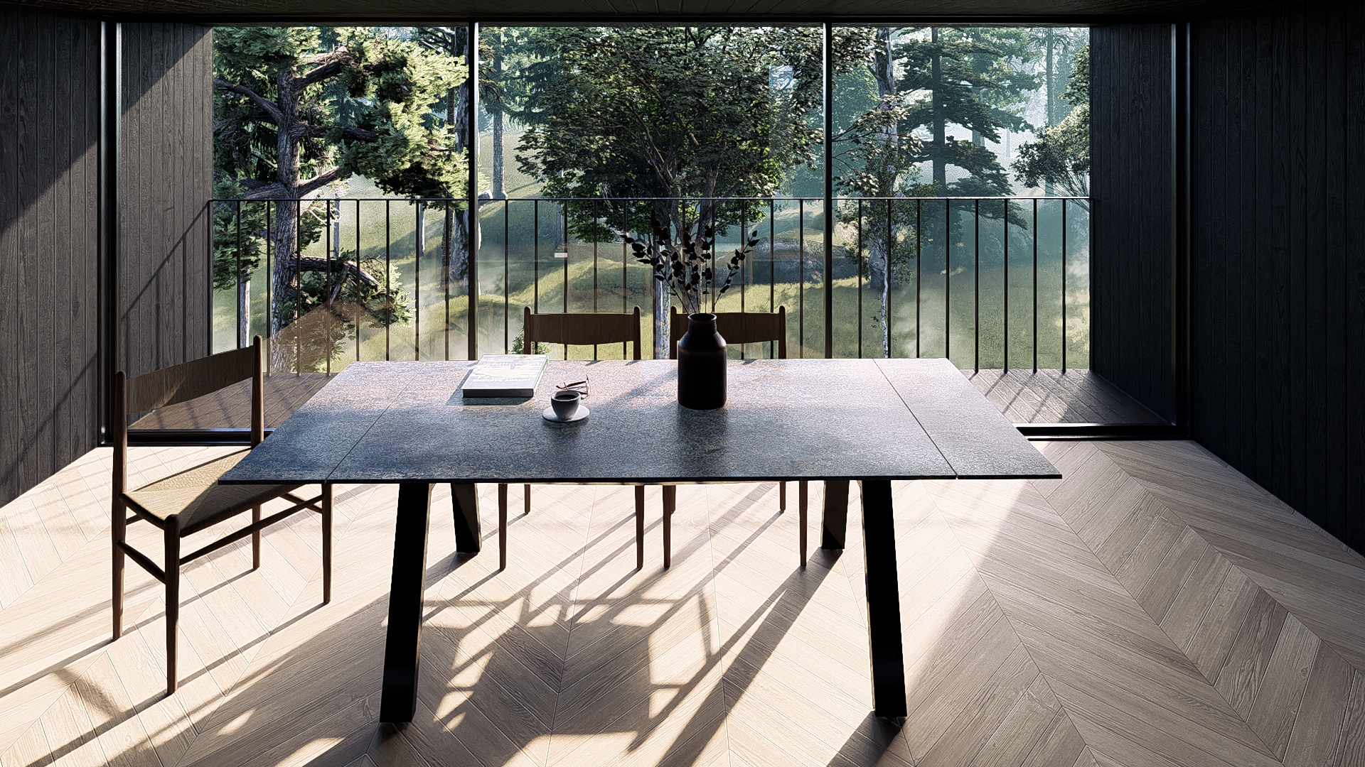 Diseñada para admirar y creada para durar, nuestra mesa plegable de cerámica es una declaración de ingeniería estética. Su sistema exclusivo de montaje permite desplegarla con un gesto sutil, manteniendo la continuidad del diseño como si se tratara de una sola pieza de mármol natural.